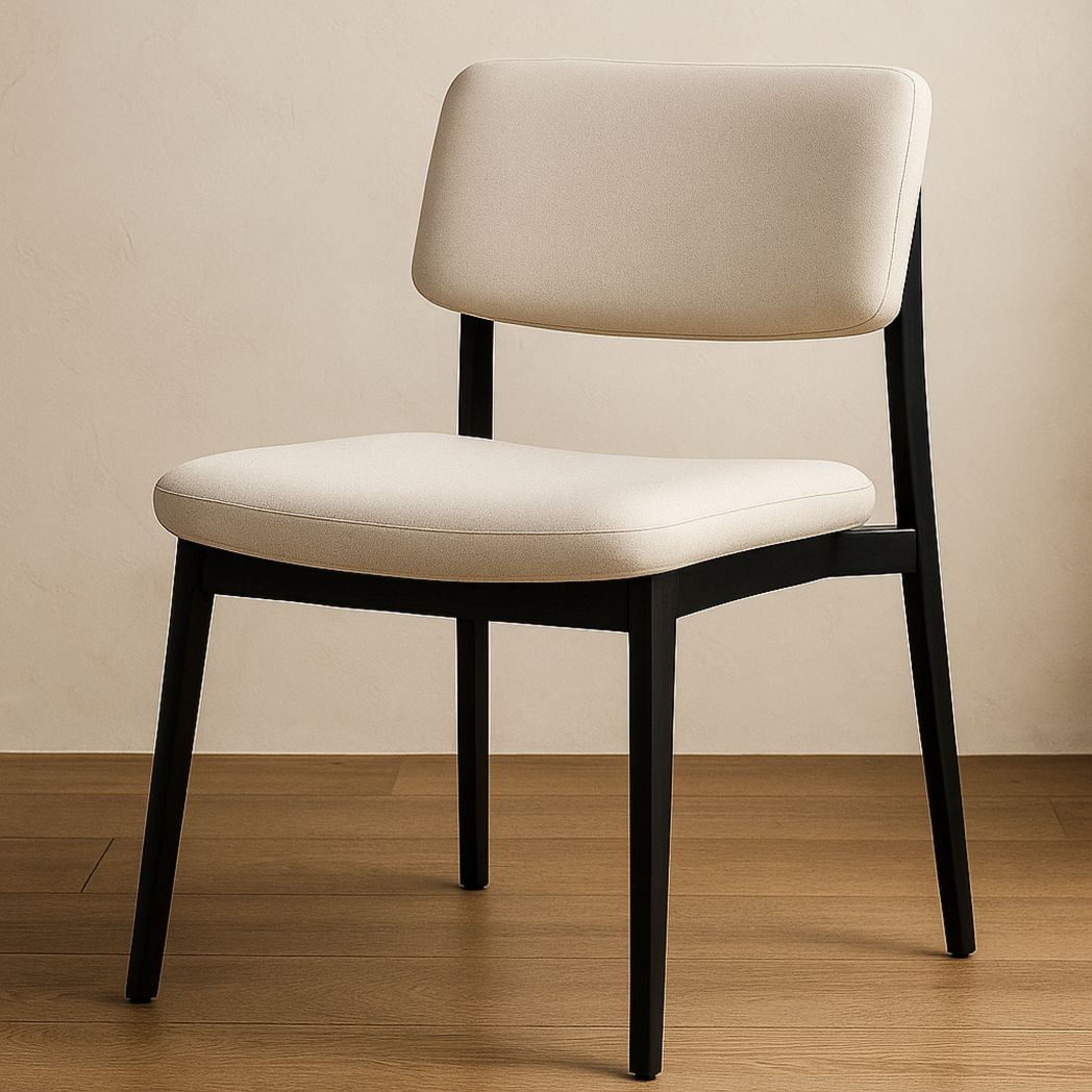Chaise en bois massif et tissu beige sans accoudoirs 80cm x 50cm x 55cm
